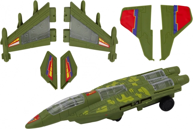 Grüne Tarnung, aerodynamische Linien und ein transparentes Cockpit verleihen dem Modell das authentische Erscheinungsbild eines echten Düsenjägers. Eine großartige Ergänzung für die Spielzeugflotte.