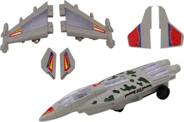 • Realistisches F–35-Kampfjet-Design in grauer Tarnung
