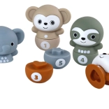 Jeder der 6 Kegel zeigt ein anderes Tier und ist mit einer Ziffer gekennzeichnet, sodass Kinder auf natürliche Weise das Erkennen von Zahlen und erstes Zählen üben. Die zerlegbare Konstruktion offenbart verschiedene Formen zum Zuordnen, die die kognitive Entwicklung anregen und die Konzentration fördern.