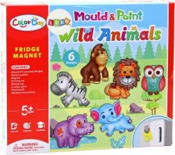 Kreativset für Kinder zur Herstellung von Magneten mit Tiermotiven wie Löwen und Elefanten. Enthält alles Nötige, um bis zu 6 verschiedene Magnetmotive aus Gips herzustellen, was Vergnügen und Entwicklung künstlerischer Fähigkeiten bietet.