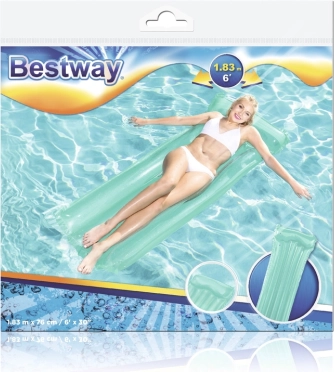 Genießen Sie sommerliche Entspannung auf dem Wasser mit der aufblasbaren BESTWAY-Luftmatratze in den Maßen 183 × 76 cm. Sie verfügt über ein integriertes Kissen für Komfort, eine stabile Konstruktion und besteht aus robustem PVC. Eine Reparaturfolie ist im Lieferumfang enthalten, sodass Sie unbeschwert jeden Sonnenstrahl am Pool und Strand genießen können.