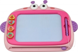 Die magnetische Tafel ist ideal für erste Zeichnungen, Schreiben und einfaches Lernen. Unter dem Bildschirm befinden sich Metallpartikel, die sich bei Berührung mit dem magnetischen Stift zu Bildern in vier Farben (Blau, Gelb, Grün, Rot) anordnen. Einfach den Löschschieber bewegen und die Fläche ist wieder sauber – ganz ohne Papier und Unordnung.