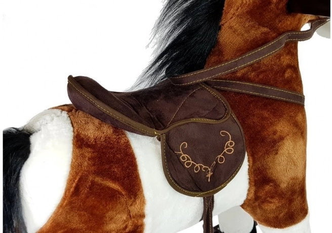 Unser dunkelbraunes Schaukelpferd besteht aus weichem Plüschmaterial, das für hohen Komfort während langer Spielzeiten sorgt. Das Pferd ist mit realistischen Geräuschen ausgestattet, die durch Drücken des Ohres aktiviert werden und die Atmosphäre des Wilden Westens mit Wiehern und Galoppklängen lebendig machen.