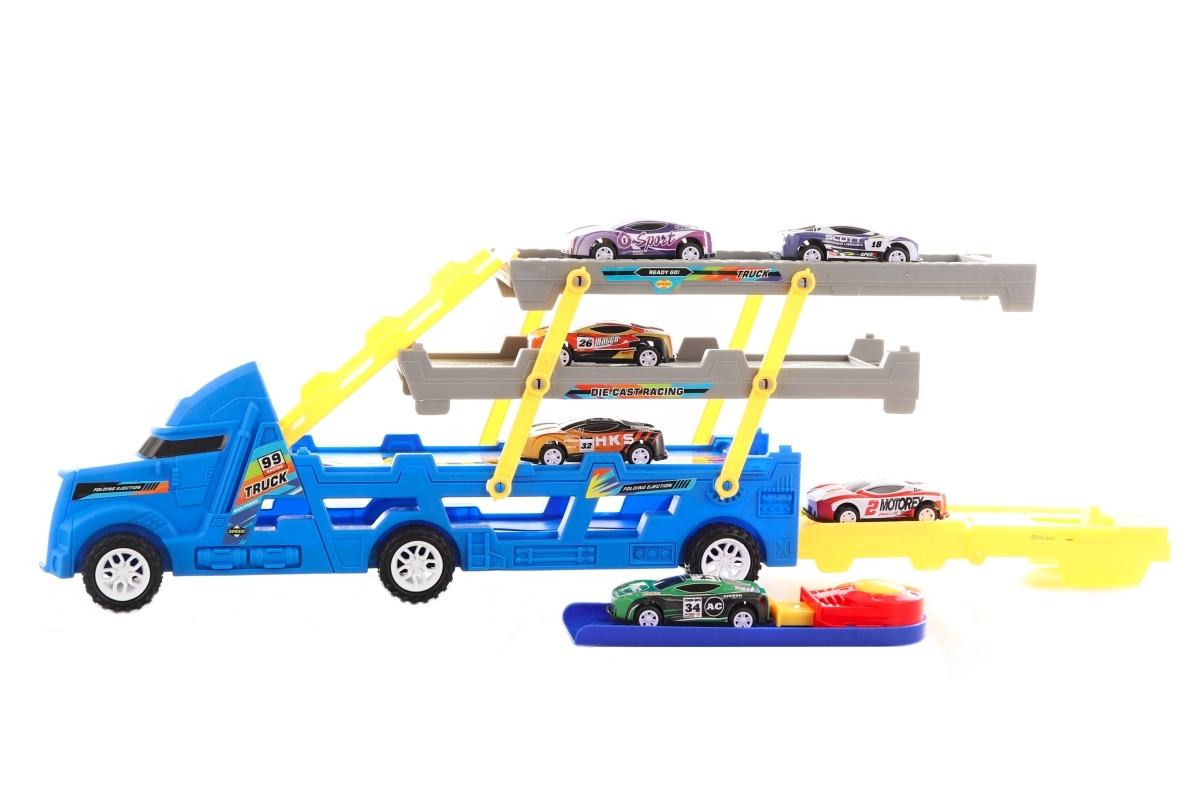 - Komplettset – großer Lkw + 6 Rennflitzer + Abschussrampe.