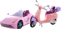 Das rosa Auto (33 cm), der realistische Roller (30 cm) und das Fahrrad (17 cm) ermöglichen Ausflüge in die Stadt und in den Park. Leicht zu steuern und ideal für actionreiches Spiel.