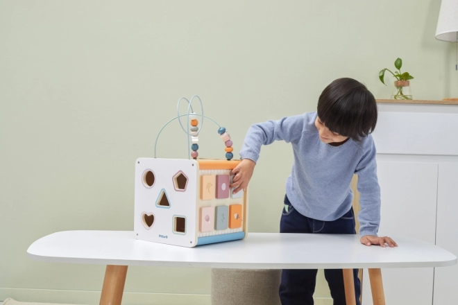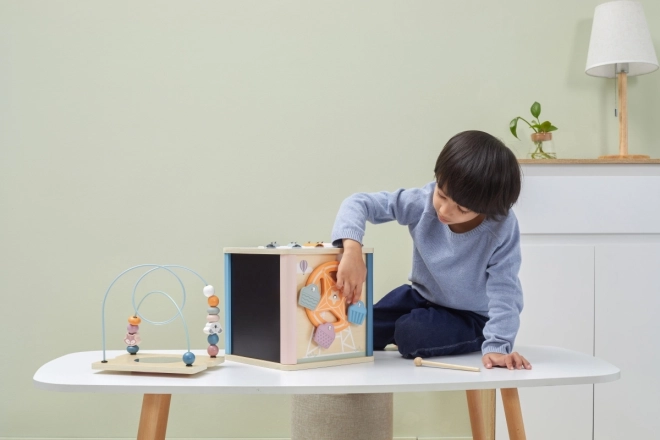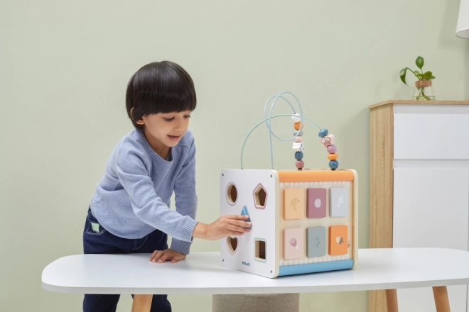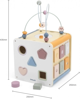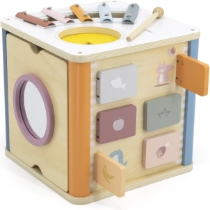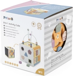 Viga PolarB Lernwürfel 8-in-1 bietet acht verschiedene Aktivitäten, die verschiedene Aspekte der kindlichen Entwicklung abdecken. Das Spielzeug beinhaltet:
