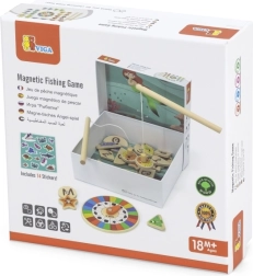 Im Set finden Sie 2 magnetische Angelruten, 26 bunte Fische und ein Drehrad, das die Farbe oder Form des Fangs bestimmt. Perfekt für das Solospiel oder den Wettkampf zu zweit.