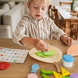 Kinder lernen Zutaten zu erkennen, trainieren die Augen-Hand-Koordination und entwickeln soziale Fähigkeiten beim gemeinsamen „Kochen“ mit Familie und Freunden.