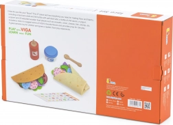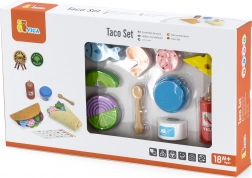 Das VIGA Taco- und Burrito-Set bringt Kindern ein authentisches Kocherlebnis. Weiche Filz-Wraps und farbenfrohe Holz-Lebensmittelstücke (Gemüse, Käse, Fisch u. a.) laden zum Kombinieren der Geschmäcker und zum Erfinden eigener Rezepte ein. Dank Zubehör wie Soßenflasche, „Joghurt“-Schälchen und Holzlöffel wird das Spiel noch abwechslungsreicher.