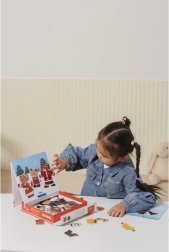 Dieses kreative Set bringt das beliebte magnetische Anziehspiel aus Holz mit dem Motiv einer Bärenfamilie. Kinder können verschiedene Outfits und Gesichtsausdrücke kombinieren, Berufe und Alltagssituationen ausprobieren und eigene Geschichten erfinden. 54 magnetische Teile bieten viele Kombinationen für stundenlangen Spielspaß.