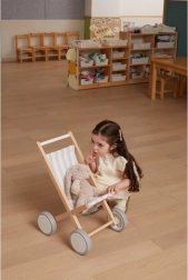 Der Rahmen aus Naturholz bietet Stabilität und eine lange Lebensdauer. Ideal für das tägliche Spielen mit Puppen und Kuscheltieren.