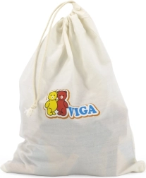 Der praktische VIGA-Stoffbeutel hält alle Teile beisammen – ideal für unterwegs und für den Kindergarten.