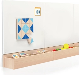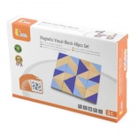 Dieses hochwertige Set magnetischer Holz-Tangrams bietet stundenlangen, kreativen Spielspaß. Kinder können einfache bis komplexere Motive nach Vorlage oder frei nach eigener Fantasie legen. Die magnetischen Teile in angenehmen Blautönen und naturbelassenem Holz haften sicher auf Metallflächen oder Magnettafeln.