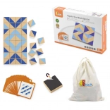 Im Set enthalten sind 40 stabile Formen, Vorlagenkärtchen sowie ein praktischer Beutel für bequemes Transportieren und Aufbewahren. Das Spiel fördert logisches Denken, visuell‑räumliches Wahrnehmen, Feinmotorik und Kreativität. Die kompakte Verpackung (ca. 26 × 18 × 5 cm) ist ideal für Reisen und das Kinderzimmer.