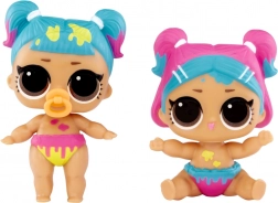 Jede L.O.L. SURPRISE!-Kugel verbirgt Babys, die „tief schlafen“ im Bettchen. Gieße einfach etwas Wasser dazu und das Bettchen löst sich magisch auf – sofort siehst du, wie viele Freunde sich darin versteckt haben. Du kannst Zwillinge, Drillinge oder sogar eine Kombination mit einem Haustier entdecken. Anschließend wische den Babys sanft die Augen mit Wasser ab und enthülle ihre geheime Augenfarbe.