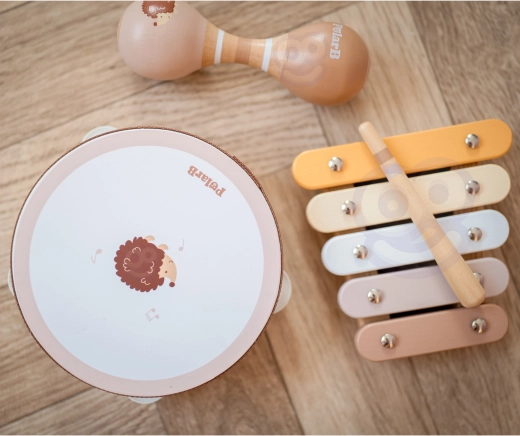 Dieses stilvolle Kinder-Set verbindet eine sichere Holzausführung mit dem harmonischen POLARB-Design samt Igelmotiv. Kinder können den Rhythmus auf dem Tamburin entdecken, einfache Melodien auf dem Xylophon spielen und mit den Maracas die Koordination üben. Ideal für die ersten musikalischen Erfahrungen zu Hause und im Kindergarten.