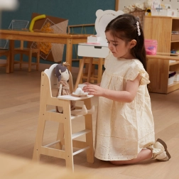 Mit dem praktischen Tischchen können Kinder ihre Puppen bequem hinsetzen und „füttern“ – ideal zur Förderung von Fantasie und sozialen Fähigkeiten.