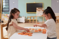 Farbige Karten mit Motiven von Formen, Obst oder Tieren ermöglichen die Anpassung des Schwierigkeitsgrads und fördern das Erkennen und Sortieren.