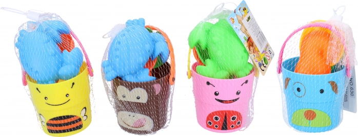 - Das Set enthält einen Eimer mit fröhlichen Tiermotiven, der perfekt zum Tragen von Sand oder Wasser ist.