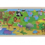 Dieses hochwertige Holzpuzzle mit Safarietieren bringt Kindern Freude am Entdecken und Lernen. Dank der 96 stabilen Teile ist das Puzzle langlebig und lässt sich auch von kleineren Kindern gut greifen. Die farbenfrohen Illustrationen unterstützen das Erkennen von Formen und Farben und fördern ganz natürlich die visuelle Wahrnehmung.