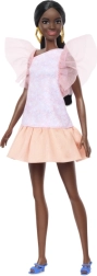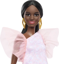 Die stilvolle Puppe BARBIE Model im pinkfarbenen Kleid mit puffigen Ärmeln bietet endlose Möglichkeiten für kreatives Spiel. Dank des modernen Outfits, auffälliger goldener Ohrringe und blauer Schuhe ist sie ideal für Mode-Styling, Geschichtenerzählen und die Förderung der kindlichen Fantasie. Die Puppe ist Teil einer Kollektion, die Vielfalt in Hauttönen, Haaren und Styles feiert. Geeignet für Kinder ab 3 Jahren.