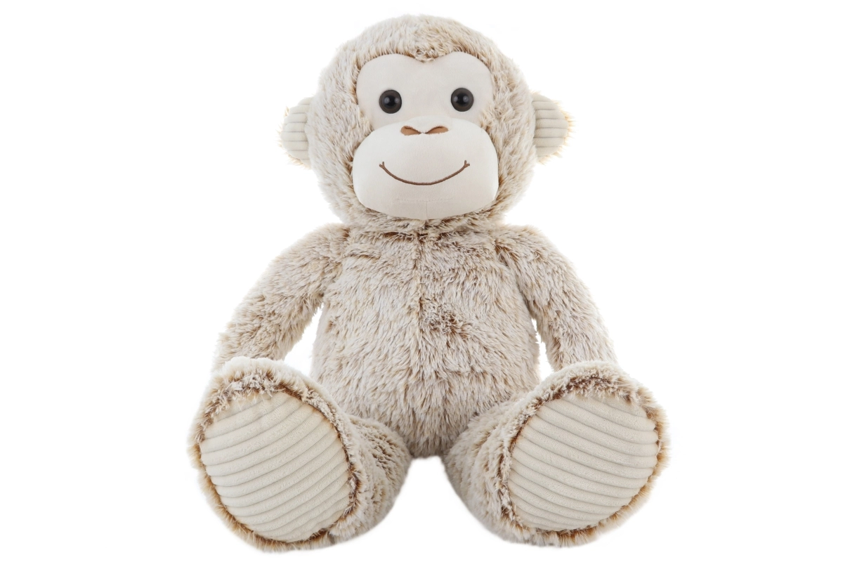 Dieser große Plüschaffe in einem beigefarbenen Ton wird zum Lieblingsbegleiter im Bettchen und auf Reisen. Er hat weiche, flauschige Härchen, fein gestickte Gesichtszüge und angenehme Kord-Details an Pfoten und Ohren. Dank der leichten Füllung lässt er sich wunderbar umarmen und auch von kleineren Kindern leicht tragen.