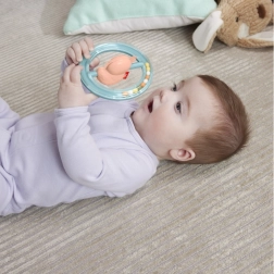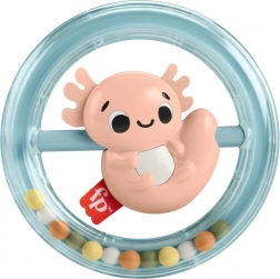 Drehbarer Axolotl in einem transparenten Ring mit rasselnden Perlen zur visuellen und auditiven Stimulation.