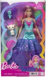 Entdecken Sie die Magie mit der Puppe Malibu Roberts aus der Kollektion BARBIE Ein Hauch von Magie – sie hat lange rosa Haare, ein glitzerndes Kleid, abnehmbare Flügel und niedliche Tierfreunde. Dazu gibt es Styling-Zubehör, das die kreative und fantasievolle Spielzeit von Kindern ab 3 Jahren fördert.