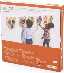 Wandtafel aus Holz mit Zahnrädern und Windrädern VIGA, FSC, Montessori