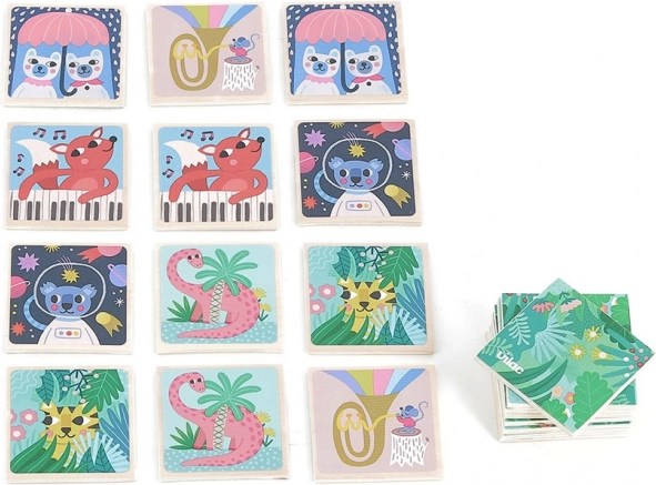 Entdecken Sie die zauberhafte Welt des Holz-Memo-Spiels von Vilac, wo fröhliche Tierillustrationen das Gedächtnis und die Fantasie der Kinder fördern. Jedes Teil ist aus hochwertigem Holz gefertigt und bietet reiche und bunte Illustrationen von Michelle Carlslund.