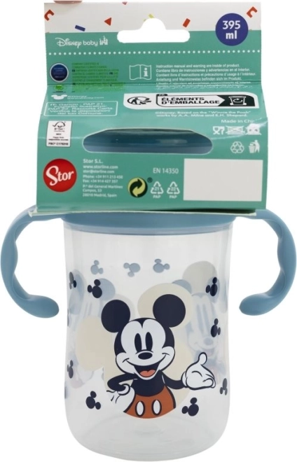 Der Becher ist mit einem Mickey Mouse-Motiv verziert, was dem Produkt ein ansprechendes Aussehen für Kinder verleiht.