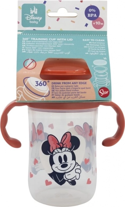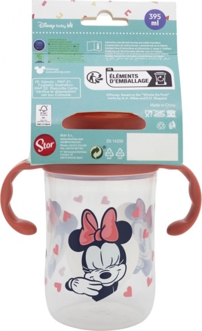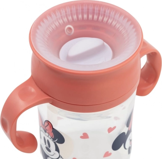 Der Trainingsbecher hat ein praktisches Design, das Kindern ermöglicht, durch bloßes Andrücken der Lippen zu trinken, unabhängig von der Position des Bechers. Dank der ergonomischen Griffe lässt er sich auch von kleinen Händen leicht halten. Das spielerische Design mit Minnie Mouse verleiht jedem Trinkmoment eine amüsante Note und sorgt für eine BPA-freie Sicherheitserfahrung für Ihr Kind.