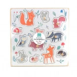 Fuchs, Maus, Eichhörnchen, Marienkäfer, Vogel, Dachs, Eule, Schweinchen, Hase, Schnecke, Reh und Igel – ideal, um den Wortschatz zu erweitern und Formen sowie Farben kennenzulernen.