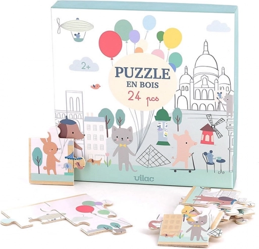 Begeben Sie sich in die malerischen Straßen von Paris und lassen Sie Kinder mit dem Panorama-Holzpuzzle von Vilac eine Welt der Fantasie entdecken. Illustrationen von Sarah Betz zeigen niedliche Tiere und Details, die Kinder auf den ersten Blick begeistern. Jedes Teil ist aus hochwertigem Holz gefertigt, hat glatte Kanten und ist für kleine Kinderhände gemacht.