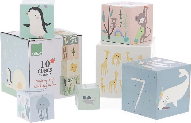Dieses erste Würfel-Set passt sich dem Entwicklungstempo Ihres Kindes an: von einfachen Greif- und Stapelspielen über das Bauen eines Turms bis hin zum Lernen der Zahlen 1–10. Jeder Würfel ist mit liebevollen Illustrationen von Tieren aus aller Welt und klaren Ziffern versehen, die ganz natürlich zum Entdecken und Benennen anregen.