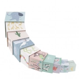Die Würfel bestehen aus hochwertiger, leichter und robuster Pappe. Durch die abgestuften Größen lassen sie sich leicht aufeinanderstapeln und ineinanderstecken, sparen Platz und sind auch ideal für unterwegs. Das Design von Sarah Betz unterstreicht die Verspieltheit und fördert Fantasie sowie Konzentration.