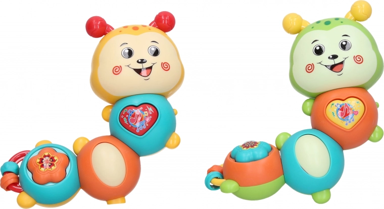 Die Rassel in Form einer Raupe bietet mehr als nur Spaß für Ihr Kind. Sie gibt Licht- und Soundeffekte von sich, die die sensorische Wahrnehmung der Kinder fördern. Enthält: