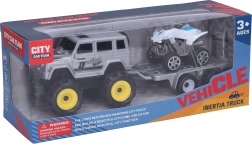 Geländewagen mit Quad 25 cm ist die perfekte Wahl für jeden Autoliebhaber und Abenteurer. Dieses Modell bietet ein tolles Erlebnis dank des Schwungrads und der freien Räder des Quads, die ein einfaches und unterhaltsames Spielen ermöglichen.