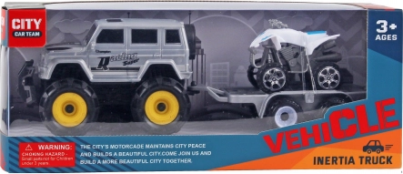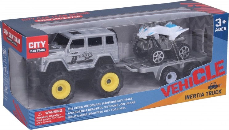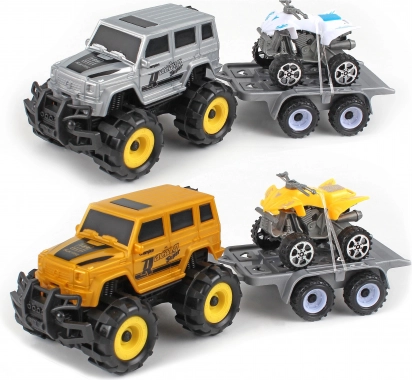 Geländewagen mit Quad 25 cm mit freien Rädern und Anhänger für abenteuerliche Fahrten.