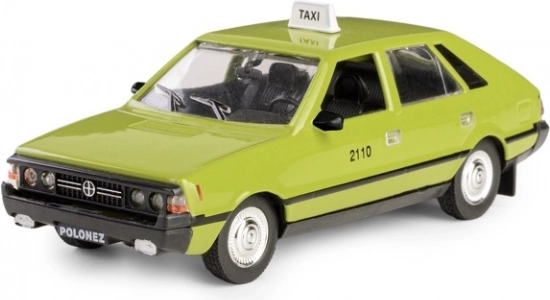 Sammelmodell des legendären Fahrzeugs FSO Polonez Taxi in grüner Farbe im Maßstab 1:43. Metallausführung Die-Cast mit Kunststoffdetails, offizielle FSO-Lizenz und Konformität mit europäischen Sicherheitsnormen für Spielzeug.