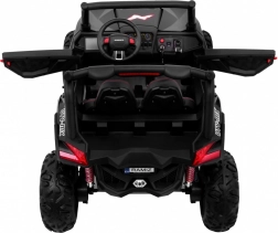 Mehr Sicherheit und Kontrolle bietet die 2,4-GHz-Fernbedienung mit drei Geschwindigkeiten und Sicherheitstaste STOP. Kinder freuen sich über sanftes Anfahren, die Wahl vorwärts/rückwärts und 3 Vorwärtsstufen per Schalthebel. Im Innenraum: Start per Schlüssel, öffnende Türen mit Verriegelung, Sicherheitsgurte und eine praktische hintere Box.
