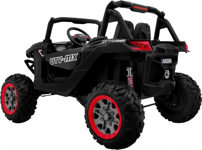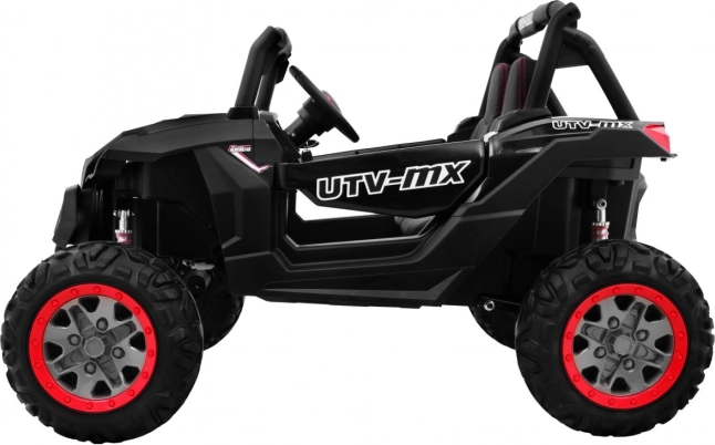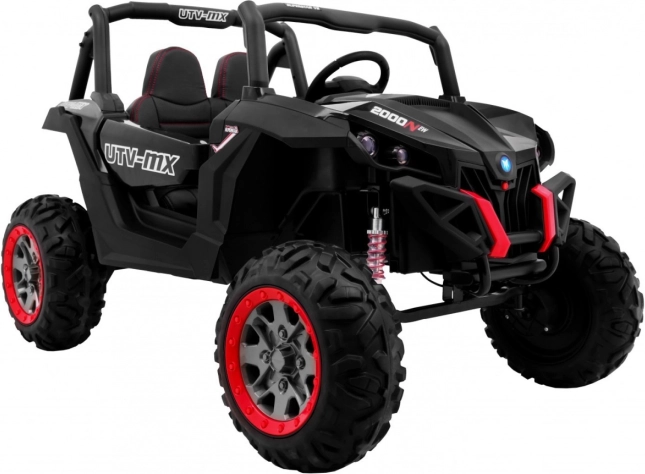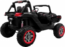 Erleben Sie Offroad-Spaß mit dem elektrischen Kinder-Buggy SuperStar 4x4 in elegantem Schwarz. Dank umschaltbarem Antrieb 2×4 / 4×4, vier 4×45 W-Motoren und großen EVA-Rädern 35 × 15 cm meistert er Unebenheiten und Gartenterrain. Die einstellbare Gewindefederung (2× vorn, 2× hinten) und die hohe Bodenfreiheit von 23 cm sorgen für komfortables Fahren.