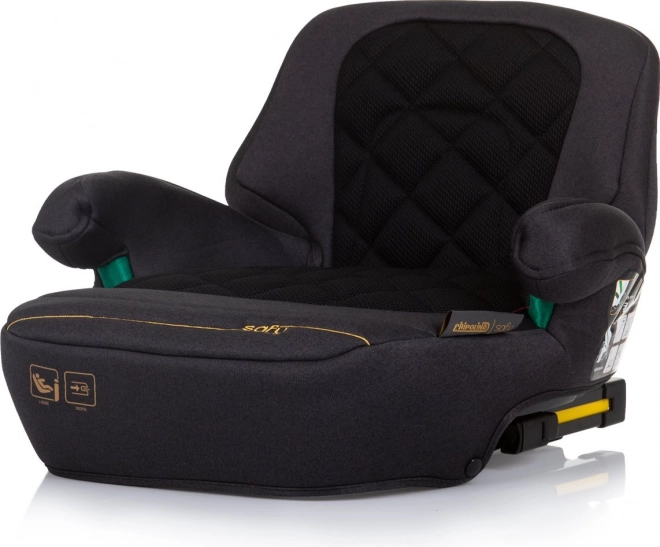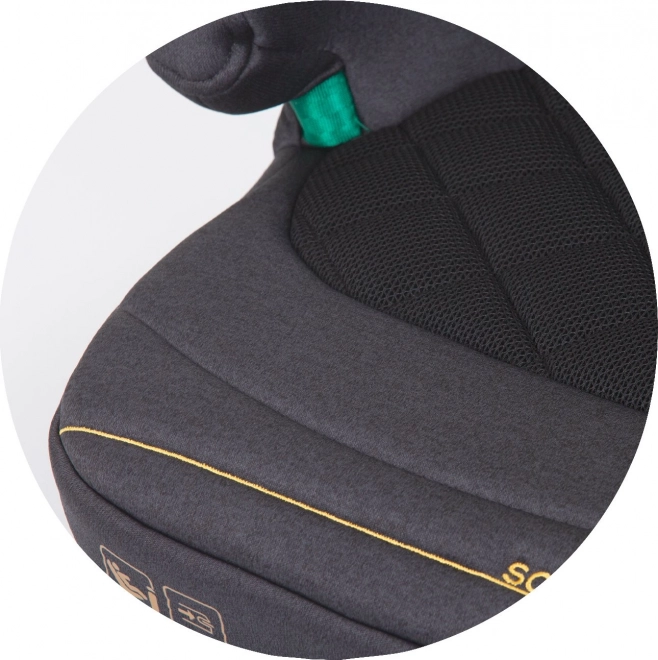 Die Installation ist schnell und unkompliziert – entweder mit ISOFIX + Fahrzeugsicherheitsgurt oder ausschließlich mit dem 3-Punkt-Gurt. Die geräumige Sitzfläche mit ergonomischer Form, weicher Polsterung und Armlehnen garantiert Komfort auch auf längeren Fahrten. Der Bezug ist abnehmbar und waschbar, sodass die Sitzerhöhung leicht sauber zu halten ist.