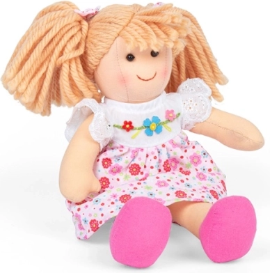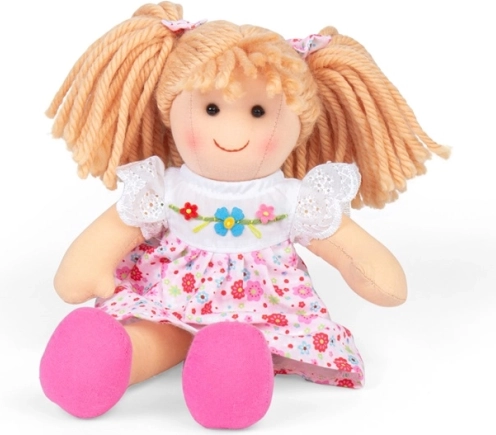 Die Stoffpuppe Georgia von Bigjigs Toys ist sanft, weich und bereit zum Kuscheln sowie für die ersten Rollenspiele. Ihr freundliches Lächeln, das rosa-weiße Kleidchen mit Blumen und die hochwertige Verarbeitung regen die Fantasie an, fördern Empathie und unterstützen die Feinmotorik beim Umkleiden und Pflegen.