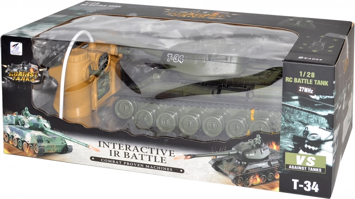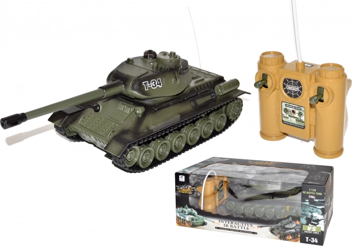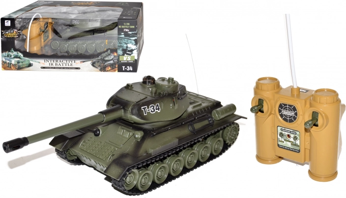RC Tank T-34 mit drehbarem Turm, Licht- und Soundeffekten für realistische Panzerschlachten.