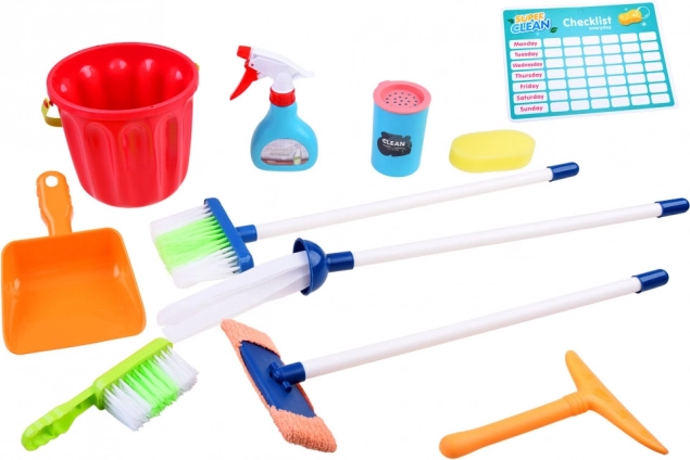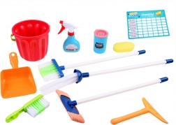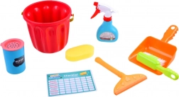 Im Set ist alles enthalten, was kleine Helfer brauchen: Eimer, Wischmopp, Handfeger, Kehrschaufel, Bürste, Schwamm und weiteres Zubehör, das die Fantasie anregt und aktives Spielen unterstützt. Fröhliche Farben und ein realistisches Aussehen ziehen die Aufmerksamkeit auf sich und laden täglich zum Spielen ein.