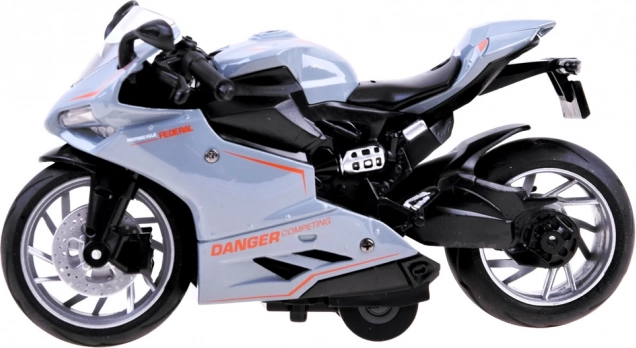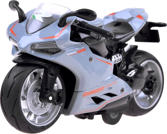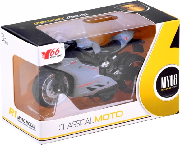 Motorrad mit Aufziehsystem ist ein Spielzeug für jeden kleinen und großen Zweiradfan. Der Rennfahrer ist aus Metall mit Kunststoffdetails gefertigt. Große Räder mit Gummireifen verbessern die Traktion. Ein Bonus ist der Stoßdämpfer im Hinterrad. Das Motorrad fährt nach dem Spannen des Federmechanismus. Einfach das Motorrad auf eine ebene Fläche stellen, das Motorrad nach hinten ziehen und loslassen! Der Rennfahrer fährt nach vorne! Das realistisch nachgebildete Motorrad im Renntyp bietet jedem Kind viel Spaß. Das Motorrad ist sehr sorgfältig und ästhetisch hergestellt.