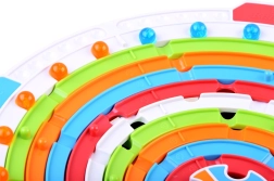 Obrotowa Ruleta ist ein strategisches logisches Spiel für die ganze Familie, das logisches Denken und Aufmerksamkeit fördert. Die Spieler versuchen, ihre Kugeln durch das Drehen der Kreise zum Ziel zu bringen.