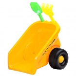 Der abnehmbare Anhänger verfügt über Halterungen zur Aufbewahrung der mitgelieferten kleinen Rechen und Schaufel und unterstützt fantasievolles Spielen auf der Baustelle oder im Sand.