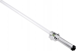 Dieses Lichtschwert mit realistischer silberner Griffgestaltung und rotem Knopf bietet Kindern authentische Erlebnisse galaktischer Duelle. Nach der Aktivierung leuchtet das grüne LED-Licht auf und Soundeffekte starten, was Spannung und Spielspaß zusätzlich steigert.